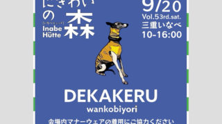 三重県いなべ市 にぎわいの森にて「Vol.5 にぎわいの森DEKAKERU wankobiyori(デカケルわんこびより)」が2025年9月20日(土)に開催!