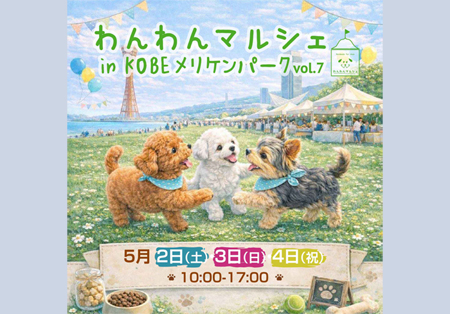 兵庫県神戸市 メリケンパーク イベント広場にて、「わんわんマルシェ in KOBEメリケンパーク vol.7」が2026年5月2日(土)~4日(月・祝)に開催。