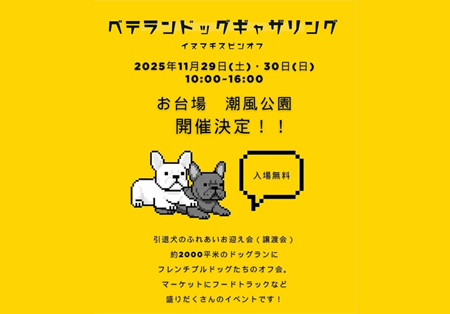 大阪府八尾市にある 久宝寺緑地 修景広場にて、「Doggies Mart ドギーズマート ’25」が2025年11月2日(日)・3日(月・祝)に開催。