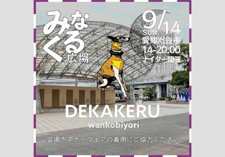 愛知県刈谷市 みなくる広場にて「DEKAKERU wankobiyori みなくる広場ナイター」が2025年9月14日(日)に開催!