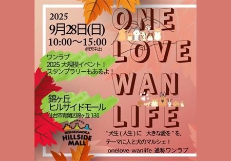 宮城県仙台市 錦ケ丘ヒルサイドモール 中庭にて、「One love Wan life ワンラブワンライフ」が2025年9月28日(日)に開催。