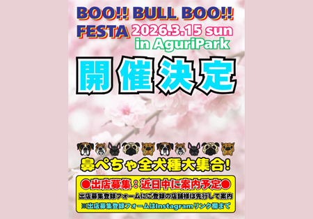 <予告> BOO!! BULL BOO!! FESTA ブーブルブーフェスタ 2026 SPRING 【埼玉県 アグリパークゆめすぎと ひだまり広場】 2026年3月15日(日)開催
