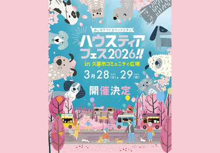 埼玉県久喜市、久喜市コミュニティ広場にて、「ハウスティアフェス2026 ~みんなでつくるペットシティ~ in 久喜市コミュニティ広場」が2026年3月28日(土)・29日(日)に開催。