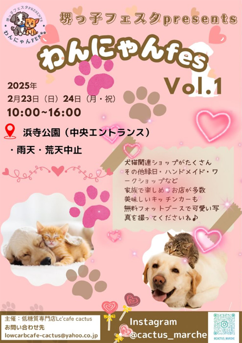 堺っ子フェスタpresents わんにゃんfes Vol.1 in 浜寺公園 【イベント情報】 2025年2月23日(日)・24(月・祝)開催