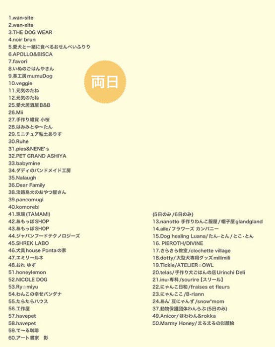 | 入場料 | ・大人(中学生以上)/2,800円 ・小学生/1,500円 ・幼児(3歳以上)/1,000円 ・わんちゃん、ねこちゃん、その他ペット/500円 |