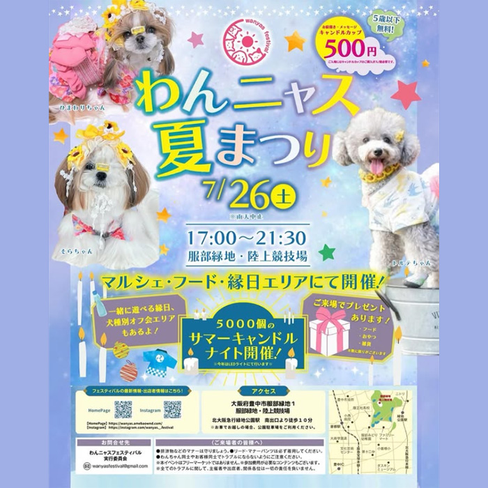 大阪府豊中市、服部緑地・陸上競技場にて「第3回 わんニャス夏祭り」が2025年7月26日(土)に開催。