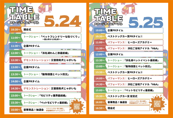 | 入場料 | ●舘山寺ドッグカー EXPO 特設会場 人:1日:500円(未修学児無料) 犬:1日:500円/頭(体高制限なし) ※お一人で多頭飼の方は、2頭目から無料 ●浜名湖パルパル会場 |