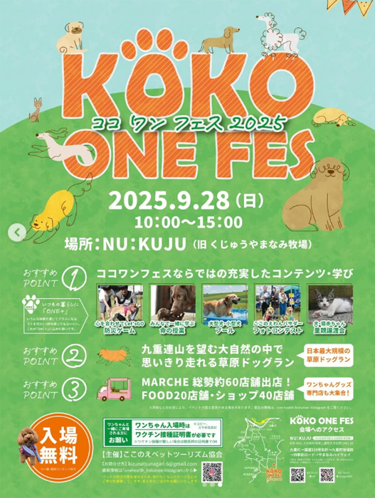 大分県玖珠郡にあるNU:KUJU(旧やまなみ牧場)にて「KOKO ONE FES ココワンフェス 2025」が2025年9月28日(日)に開催。