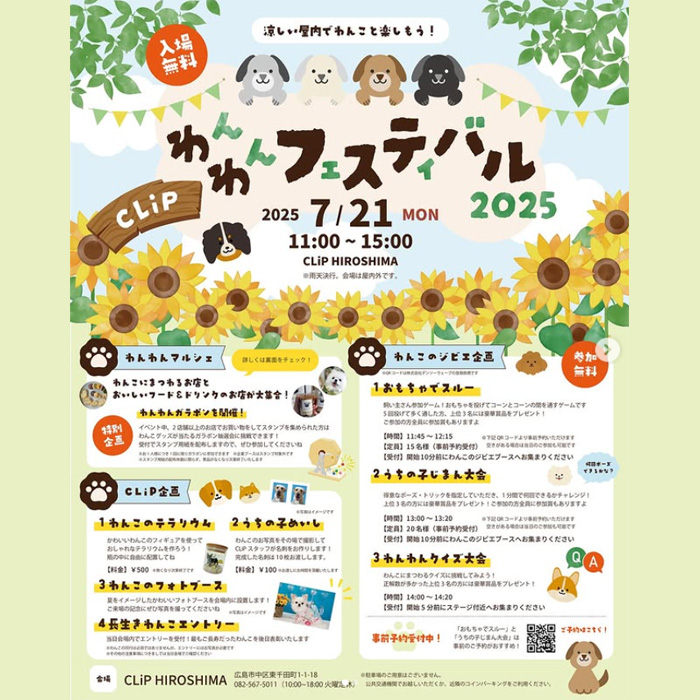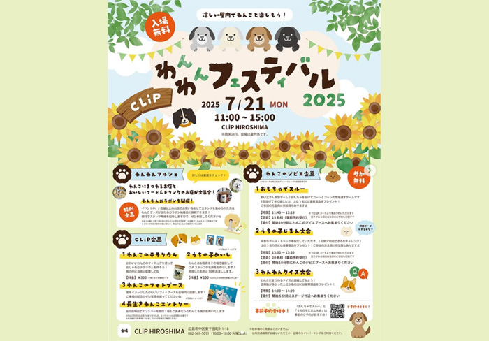 広島県広島市にあるCLiP HIROSHIMAにて「CLiP わんわんフェスティバル 2025」が2025年7月21日(月・祝)に開催。