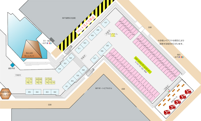 国際会議場において会議が行われますので、ペット同伴の通行は禁止させていただきます。