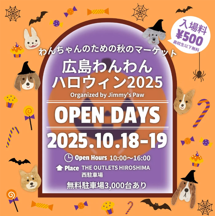 | 主催 | 広島わんわんイベント/Jimmy’s Paw(協力企画・運営) |