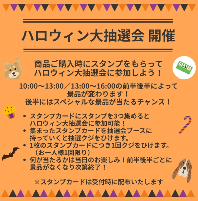 ☆スタンプカードにスタンプを3つ集めるとハロウィン大抽選会に参加可能!