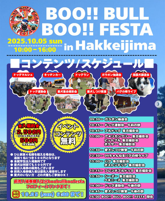 BOO!! BULL BOO!! FESTA ブーブルブーフェスタ ドッグイベントスケジュール【最新情報・随時更新】