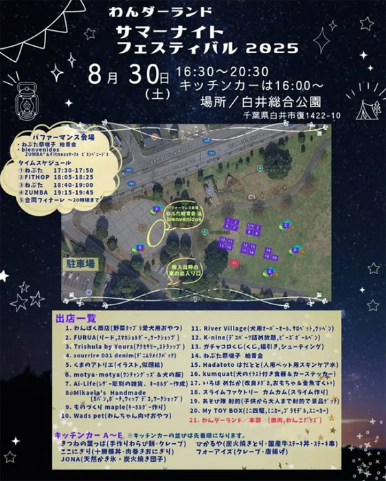 千葉県白井市 白井総合公園にて、「第5回 わんダーランド サマーナイトフェスティバル 2025」が2025年8月30日(土)に開催。