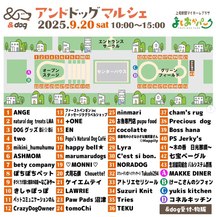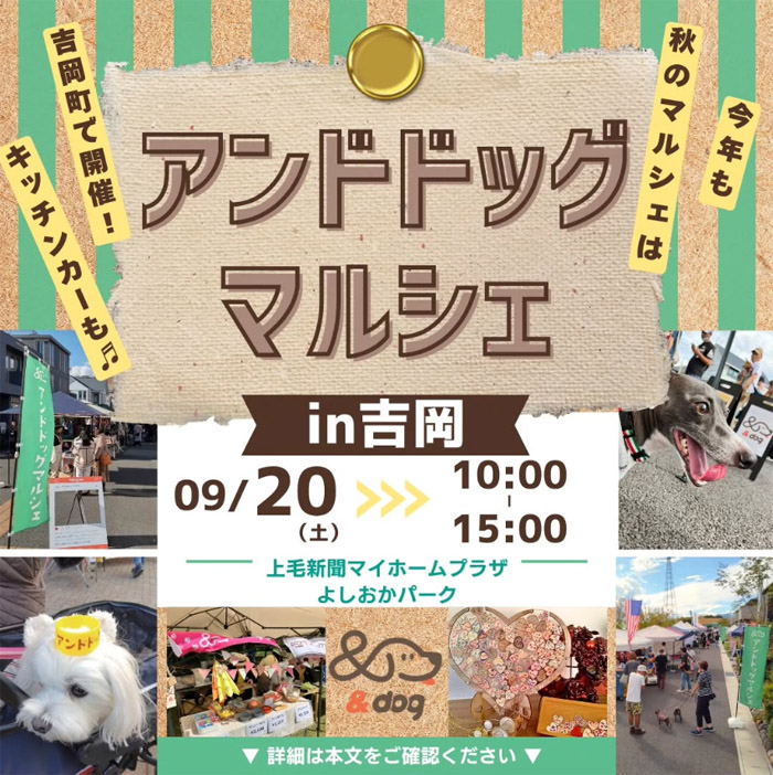 群馬県北群馬郡 上毛新聞マイホームプラザよしおかパークにて「アンドドッグマルシェ in 吉岡」が2025年9月20日(土)に開催!