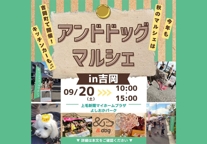 群馬県北群馬郡 上毛新聞マイホームプラザよしおかパークにて「アンドドッグマルシェ in 吉岡」が2025年9月20日(土)に開催!