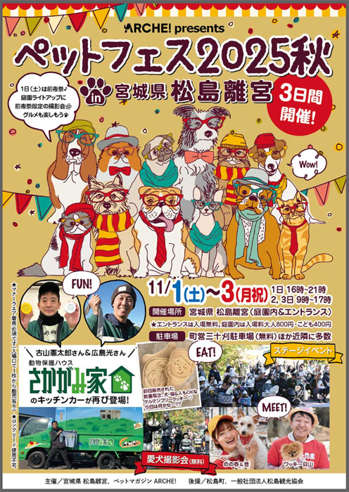 | 主催 | ・宮城県松島離宮 ・ペットマガジンARCHE! |