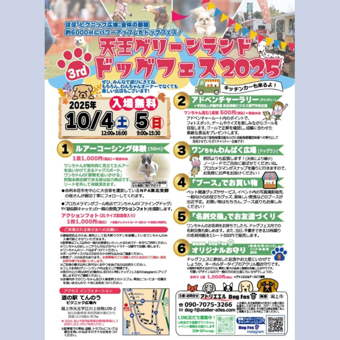 秋田県潟上市にある道の駅 てんのうにて「天王グリーンランドドッグフェス 2025 3rd」が2025年10月4日(土)・5日(日)に開催。