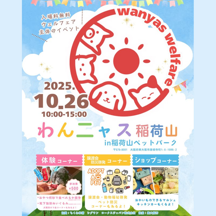 大阪府東大阪市、大阪稲荷山動物霊園にて「わんニャスフェスティバル in 稲荷山ペットパーク」が2026年3月29日(日)に開催。