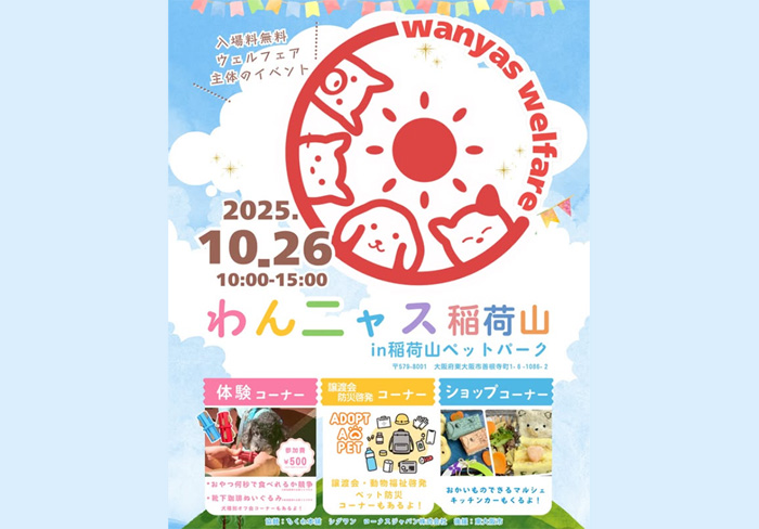 大阪府東大阪市、大阪稲荷山動物霊園にて「わんニャスフェスティバル in 稲荷山ペットパーク」が2026年3月29日(日)に開催。