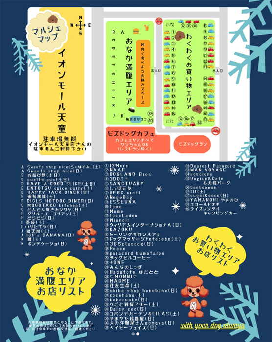 | 場所 | 〒994-0082 山形県天童市芳賀タウン北4丁目1−1 イオンモール天童 ビズクリークドッグカフェ側駐車場 |