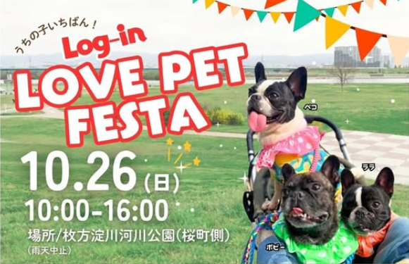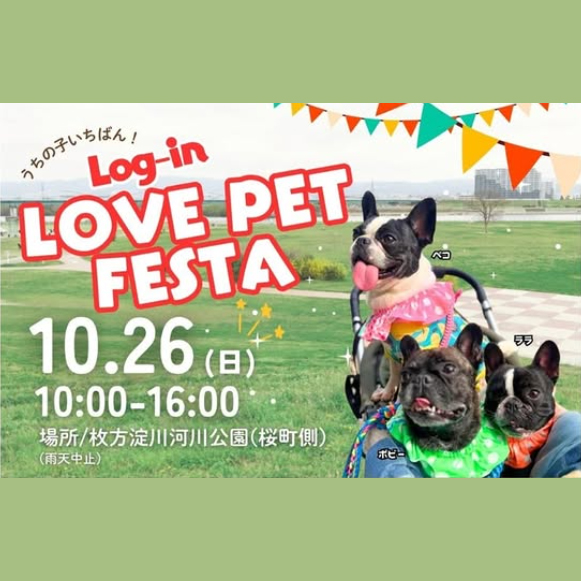 大阪府枚方市にある枚方淀川河川公園(桜町側)にて、うちの子いちばん♡「Log-in LOVE PET FESTA ログイン ラブ ペットフェスタ vol.18」が2025年10月26日(日)に開催。