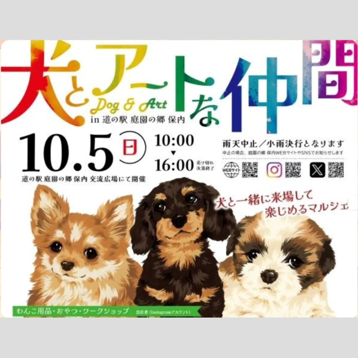 新潟県三条市にある道の駅 庭園の郷 保内 中央交流広場にて「犬とアートな仲間 in 道の駅 庭園の郷保内」が2025年10月5日(日)に開催!