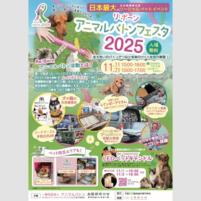 大阪府豊中市、服部緑地 円形花壇にて「Re:Born アニマルバトンフェスタ 2025」が2025年11月1日(土)・2日(日)に開催。