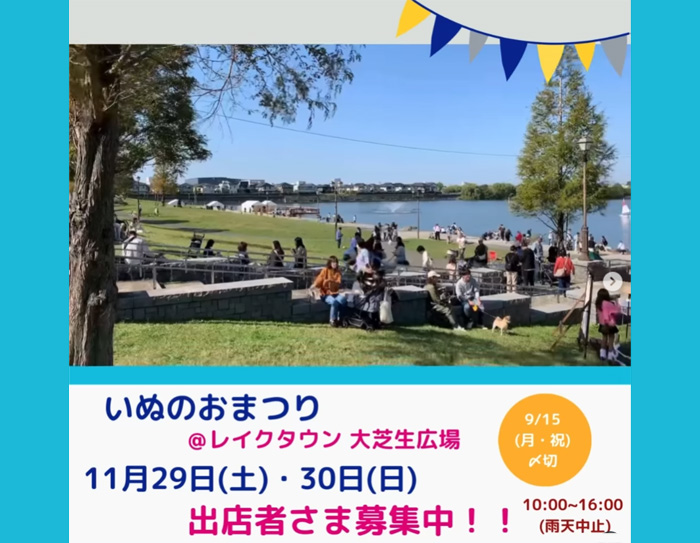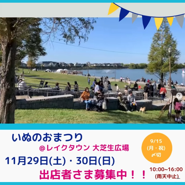 埼玉県越谷市にあるレイクタウン 大芝生広場にて「いぬのおまつり@レイクタウン大芝生広場」が2025年11月29日(土)・30日(日)に開催。