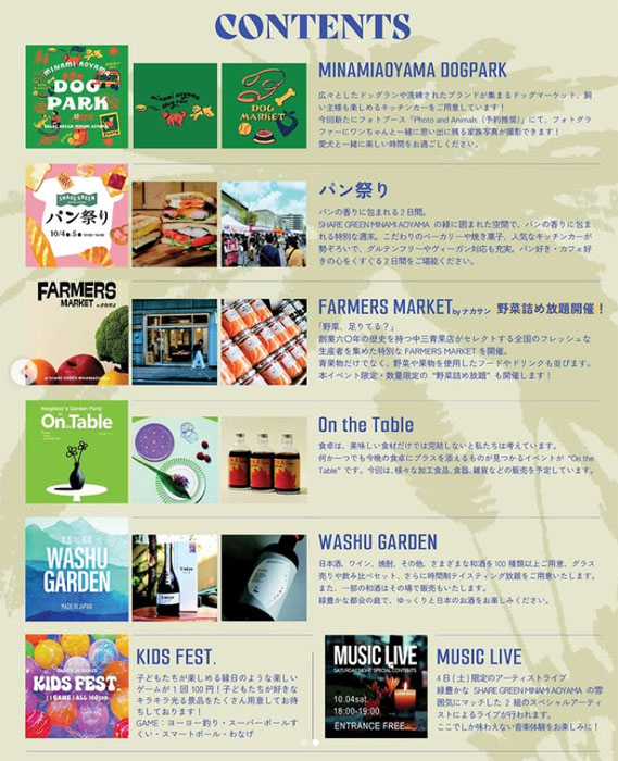 MINAMIAOYAMA DOGPARKは上記の1イベントとなり、ほかにも様々なイベントがSHARE GREEN MINAMI AOYAMAの屋内・外で開催されます!