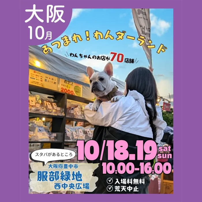 大阪府豊中市 服部緑地公園 西中央広場にて「あつまれ!わんダーランド in 服部緑地」が2025年10月18日(土)・19日(日)に開催予定。