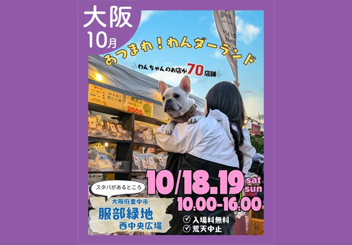 大阪府豊中市 服部緑地公園 西中央広場にて「あつまれ!わんダーランド in 服部緑地」が2025年10月18日(土)・19日(日)に開催予定。