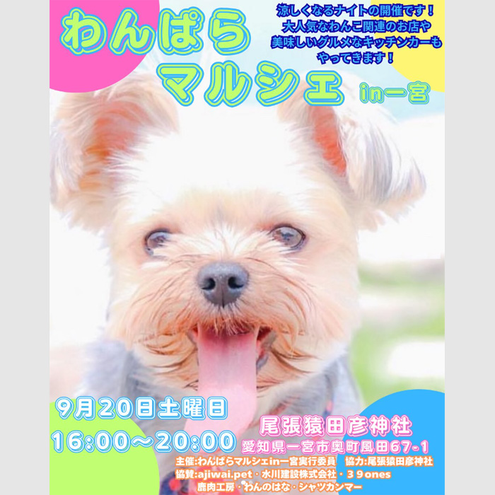 愛知県一宮市にある 尾張猿田彦神社にて「わんぱらマルシェ in 一宮 vol.12」が2025年9月20日(土)に開催。