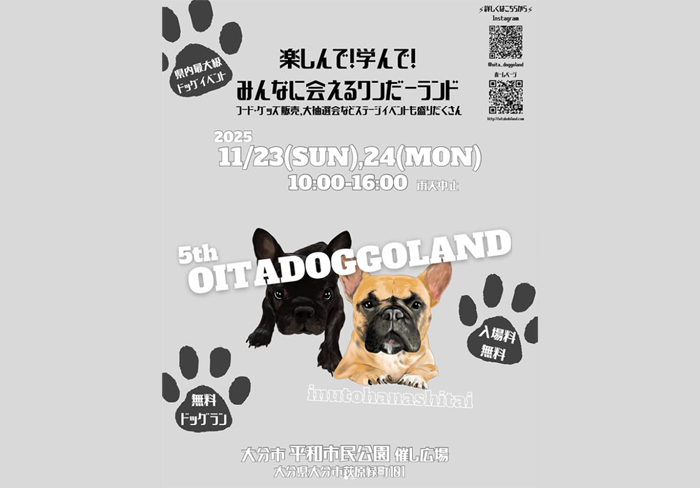 大分県大分市 平和市民公園にて、「第5回 OITA DOGGO LAND」が2025年11月23日(日)・24日(月・祝)に開催。