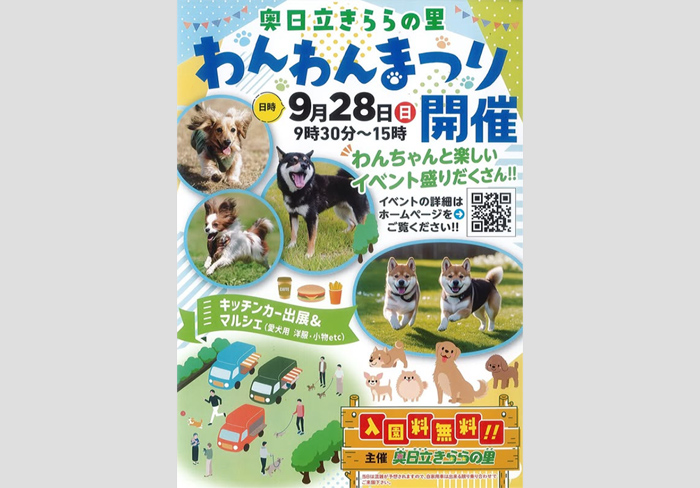 茨城県日立市 奥日立きららの里 スポーツ広場にて、「わんわんまつり」が2025年9月28日(日)に開催。