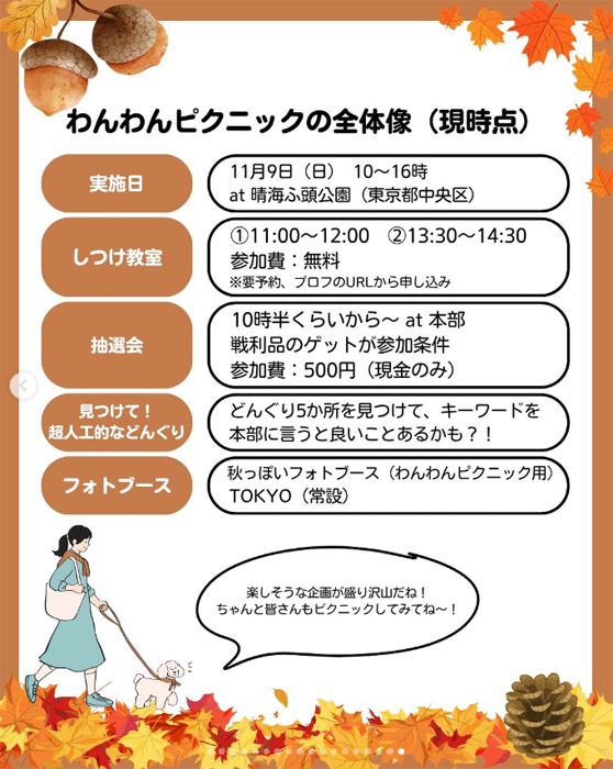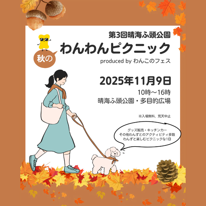 東京都中央区にある晴海ふ頭公園にて「第3回 晴海ふ頭公園秋のわんわんピクニック produced by わんこのフェス」が2025年11月9日(日)に開催。