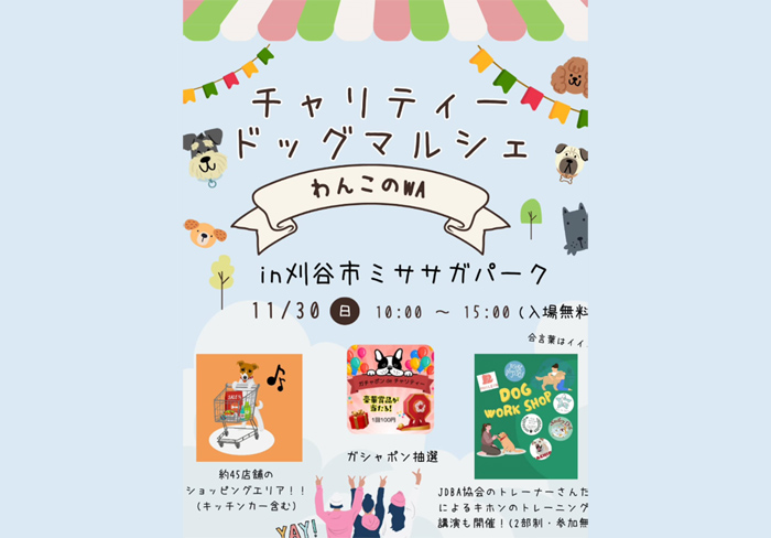 愛知県刈谷市 ミササガパーク (猿渡公園)にて、「チャリティーマルシェ・わんこのWA」が2025年11月30日(日)に開催。