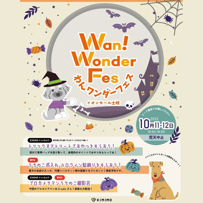岐阜県土岐市にあるイオンモール土岐にて「わんワンダーフェス@イオンモール土岐」が2025年10月11日(土)・12日(日)に開催!