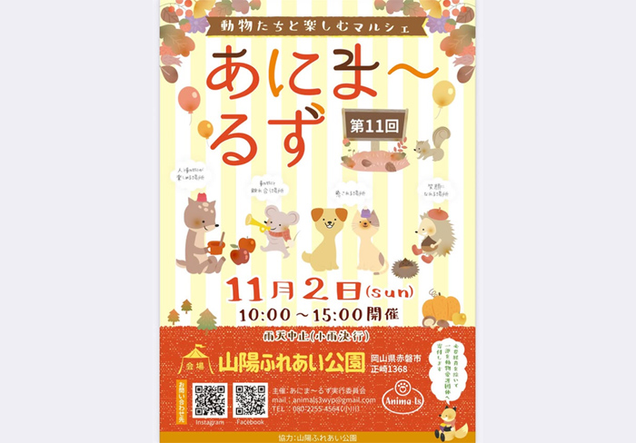 岡山県赤磐市にある山陽ふれあい公園多目的広場にて、「第11回目 Anima-ls あにま〜るず」が2025年11月2日(日)に開催。