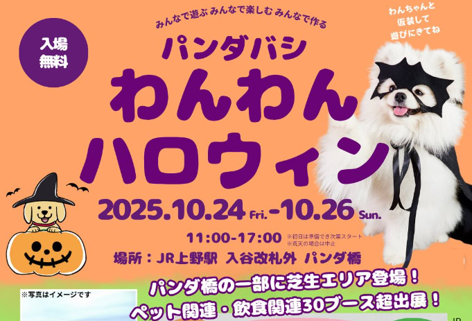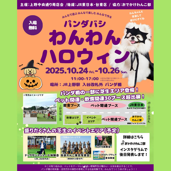 東京都台東区 JR上野駅 入谷改札外 パンダ橋にて、「パンダバシ わんわんハロウィン」が2025年10月24日(金)〜26日(日)に開催。