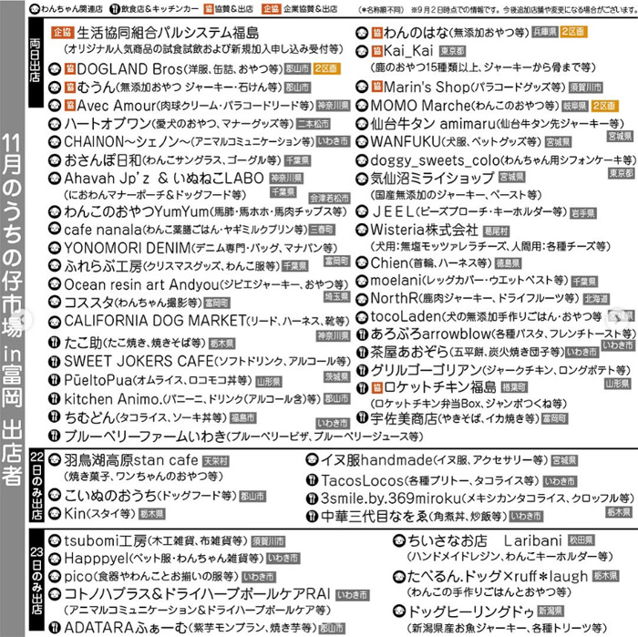 福島県双葉郡 富岡町 町民総合運動場にて「第12弾 うちの仔市場 in 富岡」が2025年11月22日(土)・23日(日)に開催。