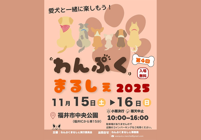 福井県福井市 中央公園にて、「第4回 わんぷくまるしぇ」が2025年11月15日(土)・16日(日)に開催。