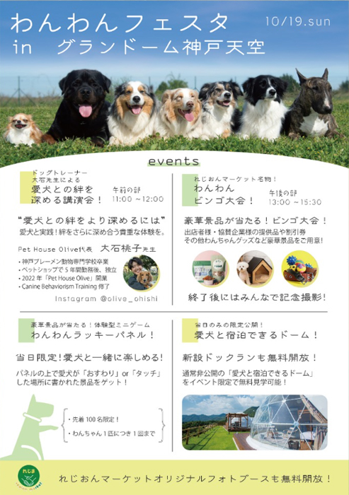 主に兵庫県、大阪府、和歌山県で開催されるドッグイベント「れじおんマーケット WAN WAN FESTA わんわんフェスタ」。