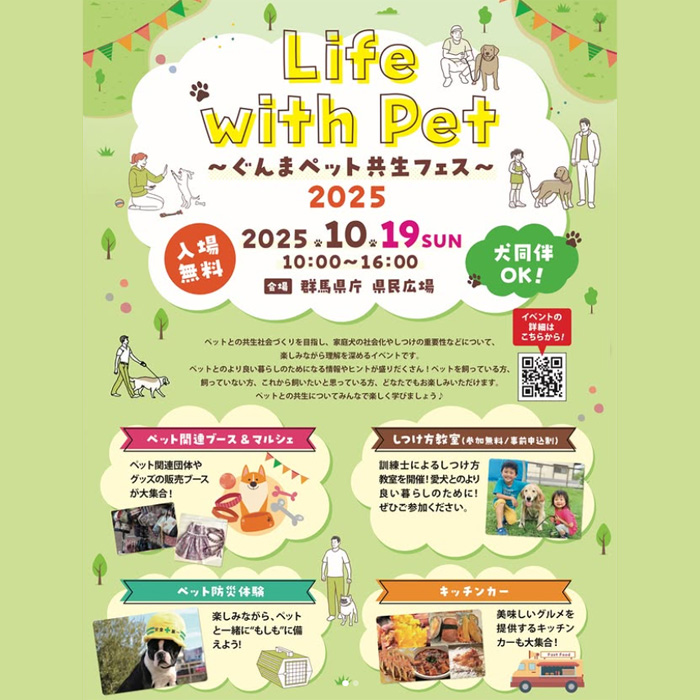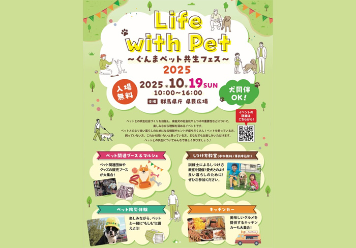 群馬県前橋市 群馬県庁 県民広場にて、「Life with Pet ~ぐんまペット共生フェス~」が2025年10月19日(日)に開催。