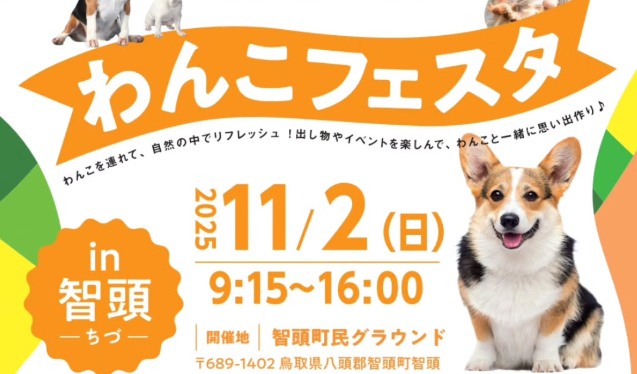 鳥取県八頭郡 智頭町民グランドにて、「わんこフェスタ in ちづ」が2025年11月2日(日)に開催。