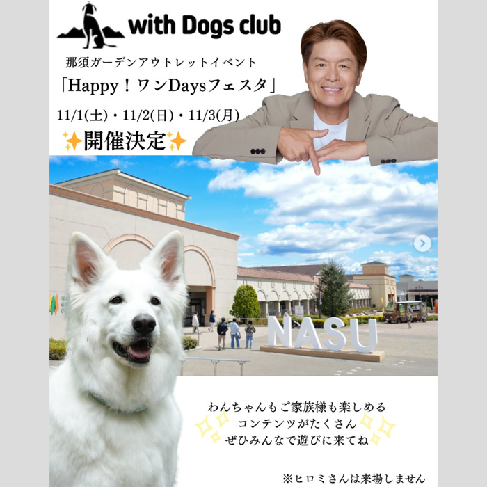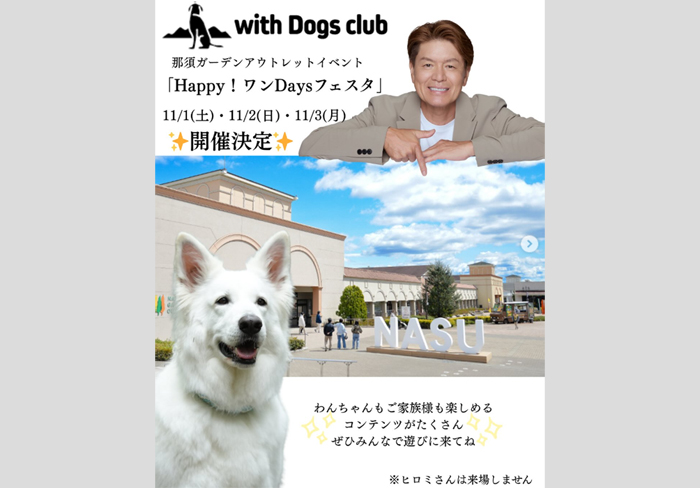 栃木県那須塩原市 那須ガーデンアウトレットにて「Happy! ワンDaysフェスタ」が2025年11月1日(土)~3日(月・祝)に開催。
