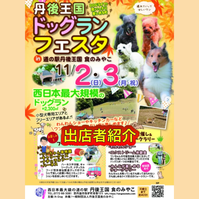 ぜひ他にも楽しいショップやグルメもたくさんある丹後王国ドッグランフェスタに遊びに来て下さいね。