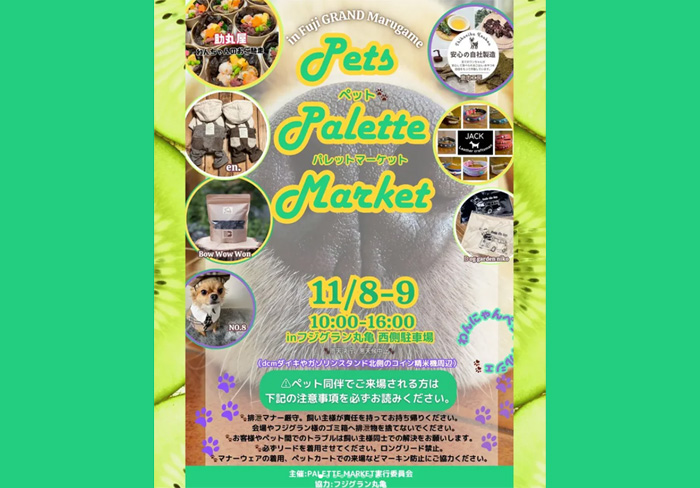 香川県丸亀市にあるフジグラン丸亀 西側駐車場にて「第5回 Pets Palette Market ペッツ パレット マーケット」が2025年11月8日(土)・9日(日)に開催。