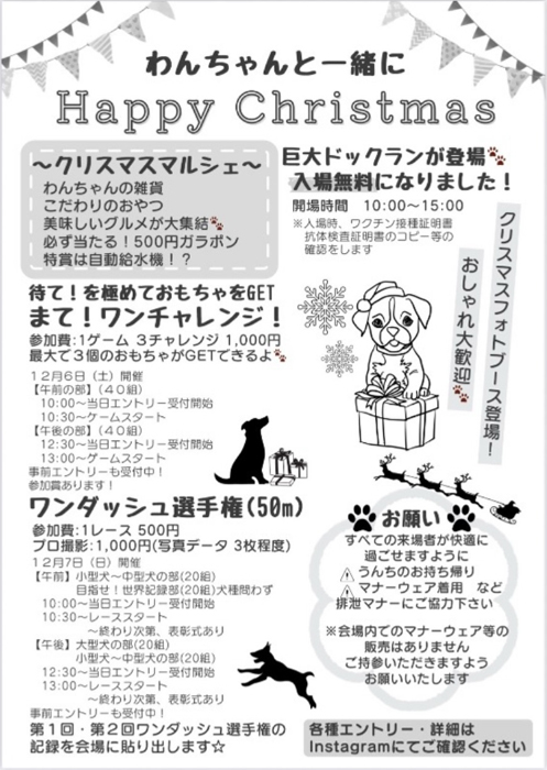 巨大ドッグラン、わんダッシュ選手権、クリスマスマルシェ開催♪