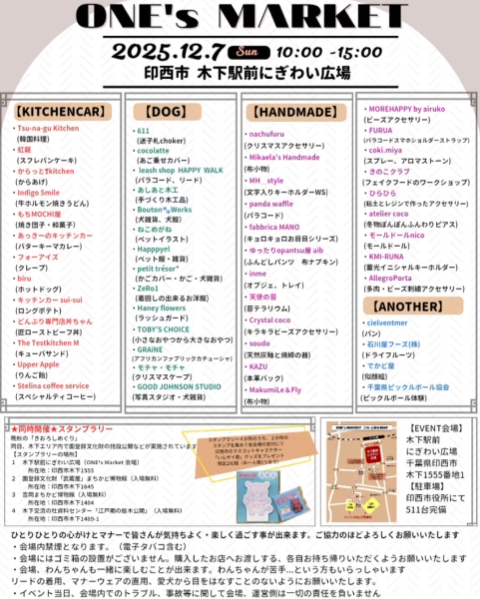 ~ONE’s Market~ 印西市 【木下駅前にぎわい広場】 2025年12月7日(日)開催